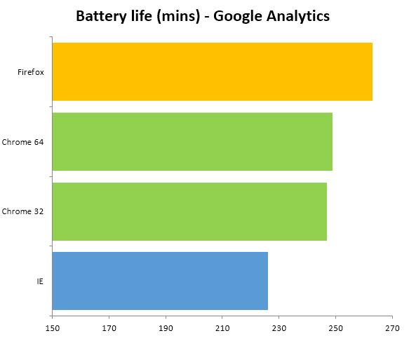 Our testing generally pointed towards Firefox and Internet Explorer as the superior browsers in terms of battery conservation, although in the Analytics test, Chrome came out on top.